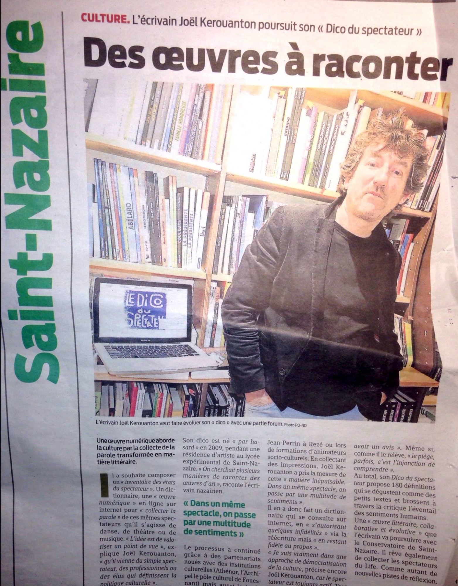 CULTURE. L’écrivain Joël Kérouanton poursuit son « Dico du spectateur ». Une oeuvre numérique aborde la culture par la collecte de la parole transformée en matière littéraire.