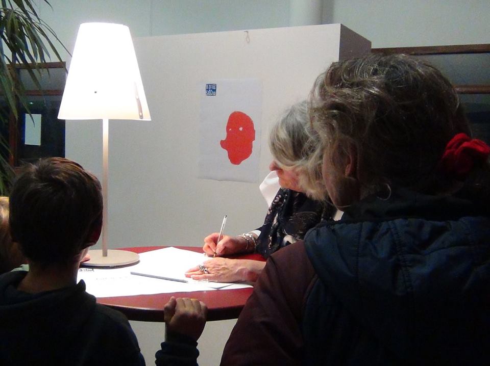 2) Trois soirées « Parlotte & Pensée », Joël Kérouanton et d’autres « scribes » (des participants à l’atelier L’écume des mots préalablement formés) se chargent de collecter les impressions et les sentiments des spectateurs, de faire parler, créer avec les intéressés une parole du spectateur qui pourra devenir par la suite, et après une recréation littéraire, une définition.