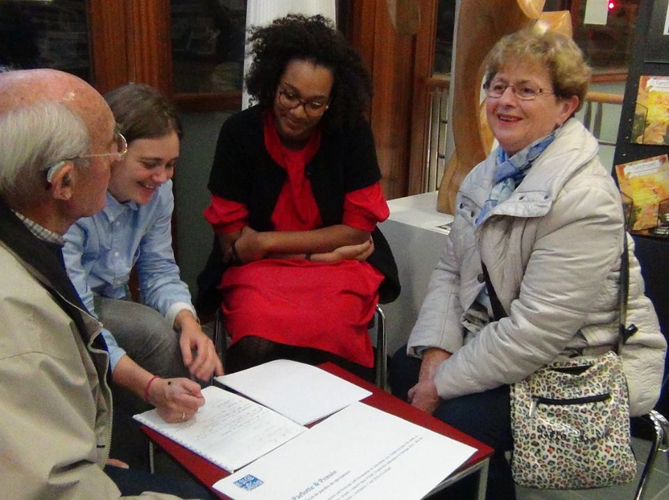 L’atelier L’écume des mots : Francoise Bauducel, Jean-claude Charpentier, Hélène Charpentier, Danièle Gheerbrant, Françoise Roc’hcongar, Anne Safran, Bernard, Michèle… (coordination et relais : Danièle Gheerbrant & Françoise Roc’hcongar). Site de l’Écume des mots