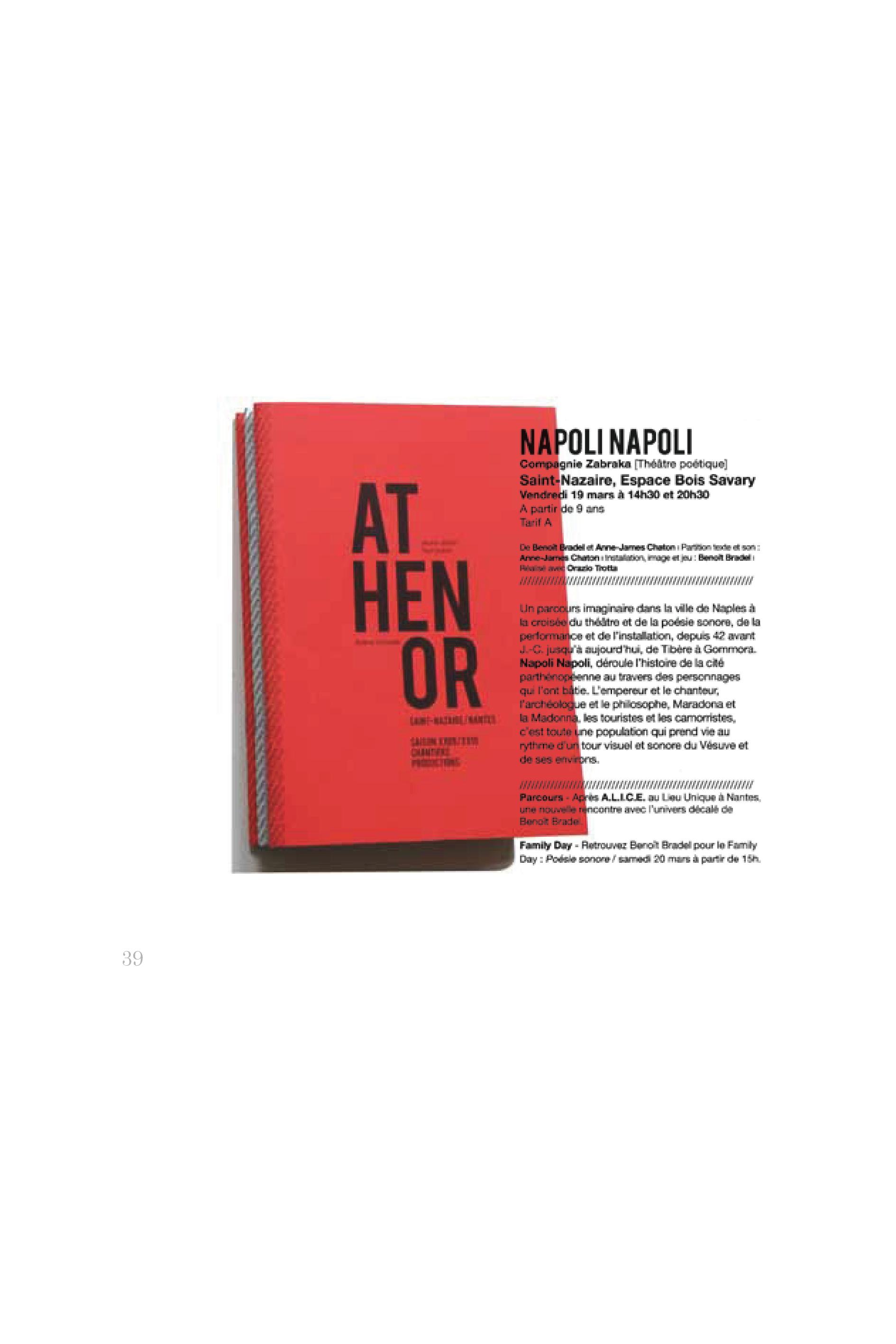 Ça, c’était un « accident » : Pour faire face à notre désarroi de spectateur et nous donner quelques balises, des définitions de spectateur sont créées. Ça se passa à l’occasion d’un spectacle de théâtre, Napoli Napoli, mis en scène par Benoit Bradel.