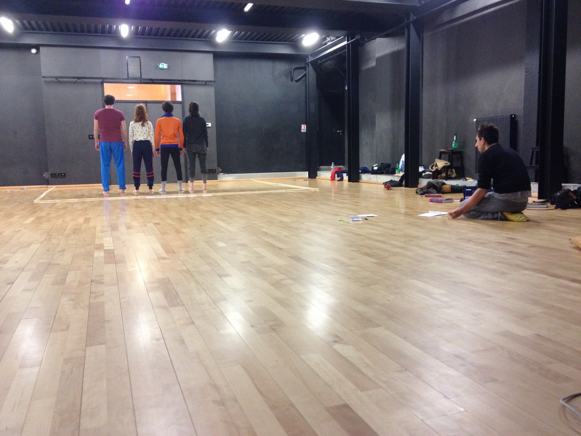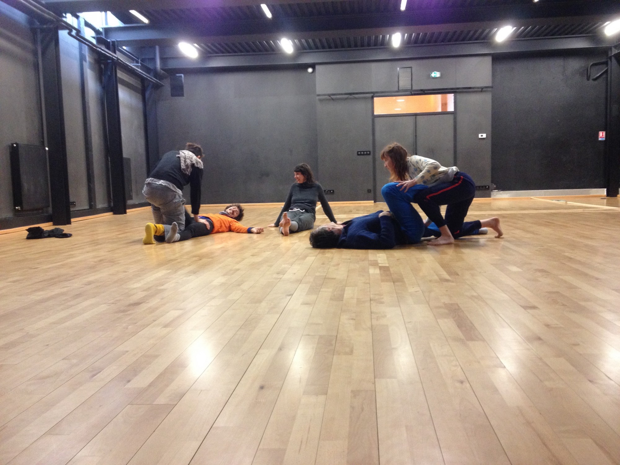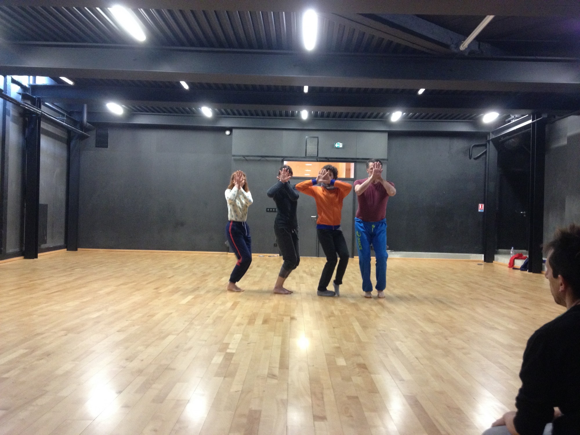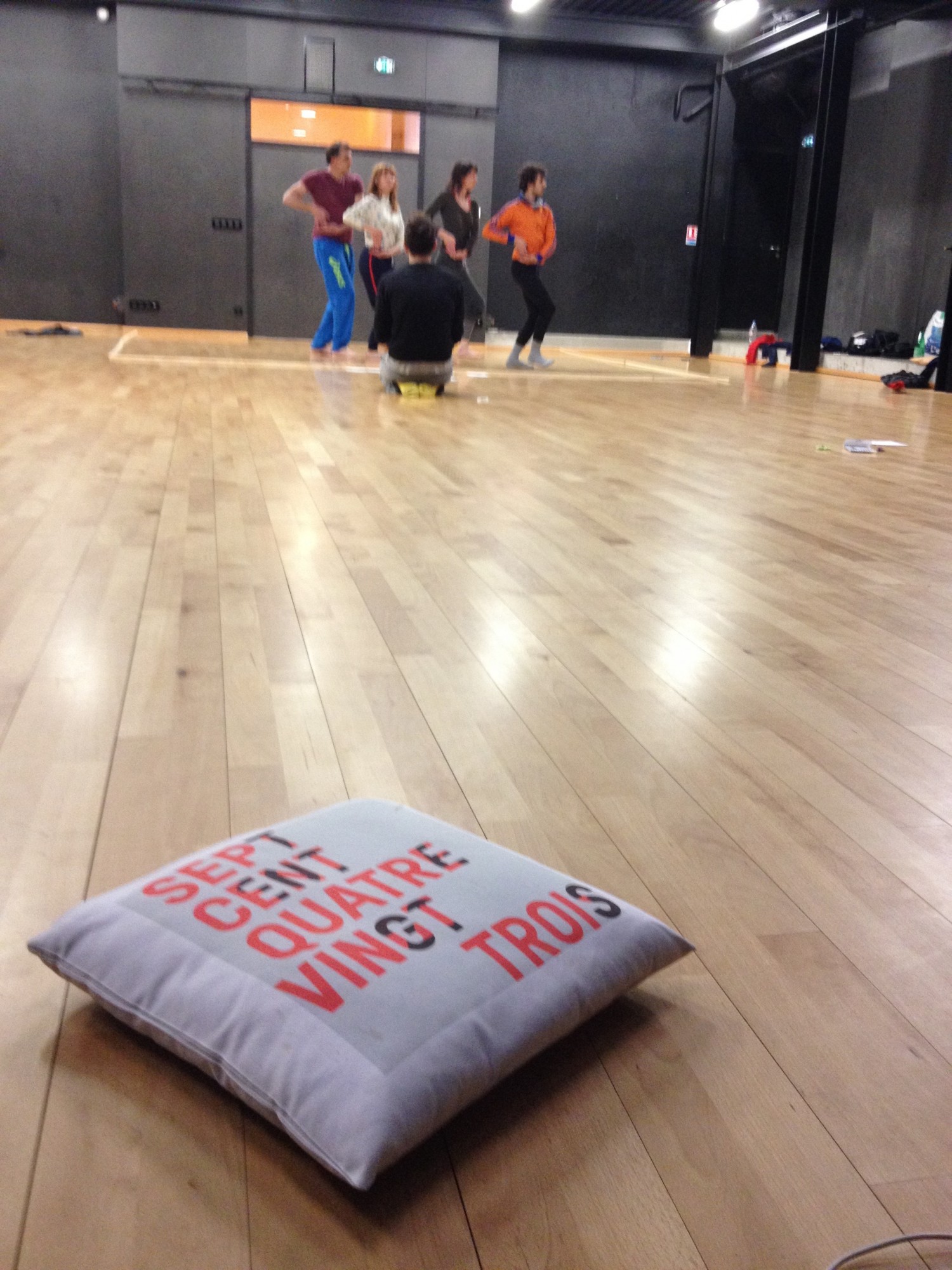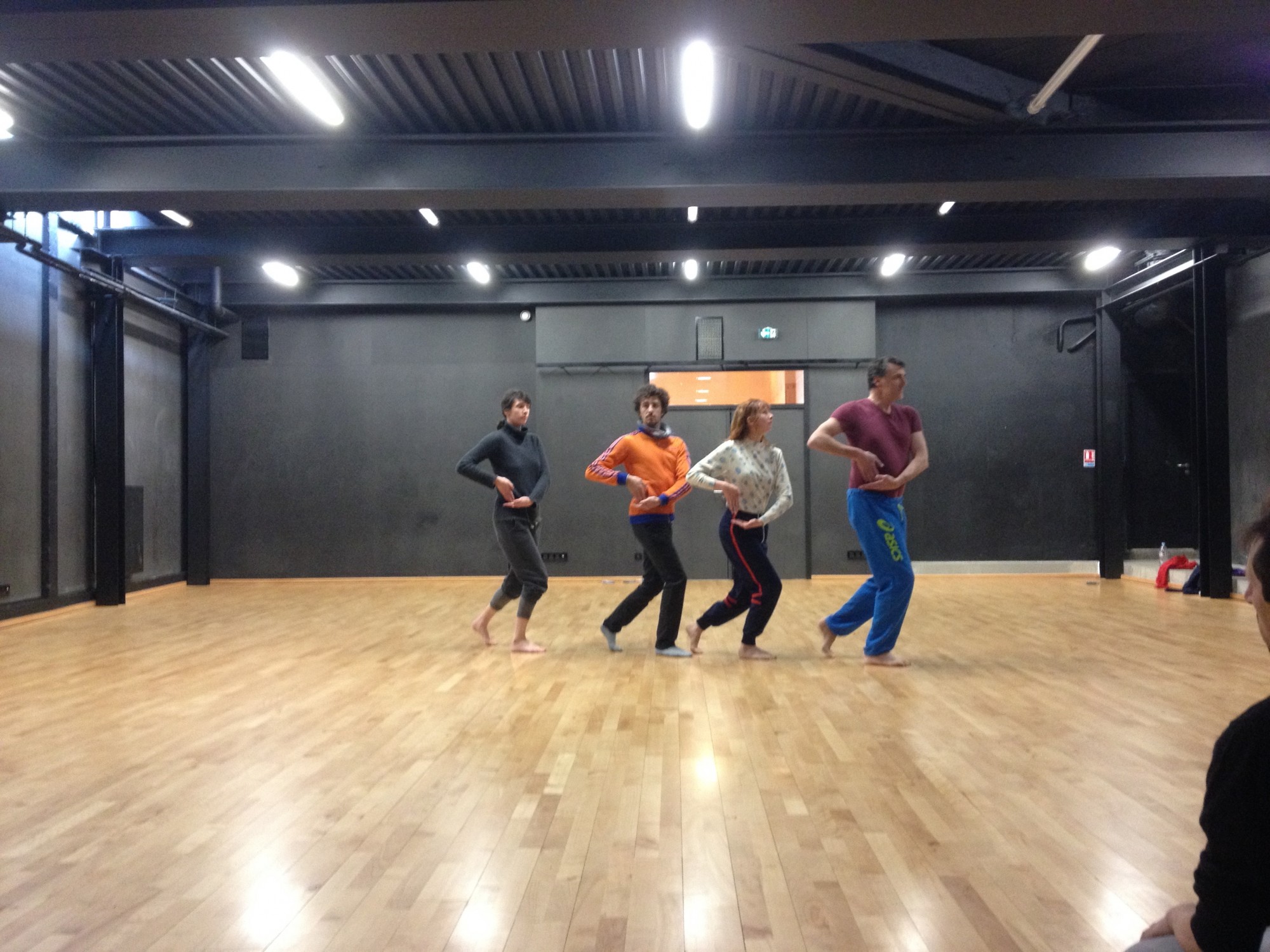 Arrivé dans le studio, y a pas une chaise pour s’asseoir. T’as voulu écrire sur ASSIS ? Pour ta peine, tu resteras assis par terre. L’écriture de la danse, ça ne se fabrique pas assis sur une chaise, ont voulu dire les danseurs. Ils n’avaient pas vraiment tort sur ce point, imaginez le tableau : moi assis (le roi de la danse baroque, alias Louis XIV) devant les danseurs debout (ses sujets) ? Bonjour l’assise sociale de l’écrivain (qui maîtriserait les mots) face au danseur (qui s’assiérait dessus).