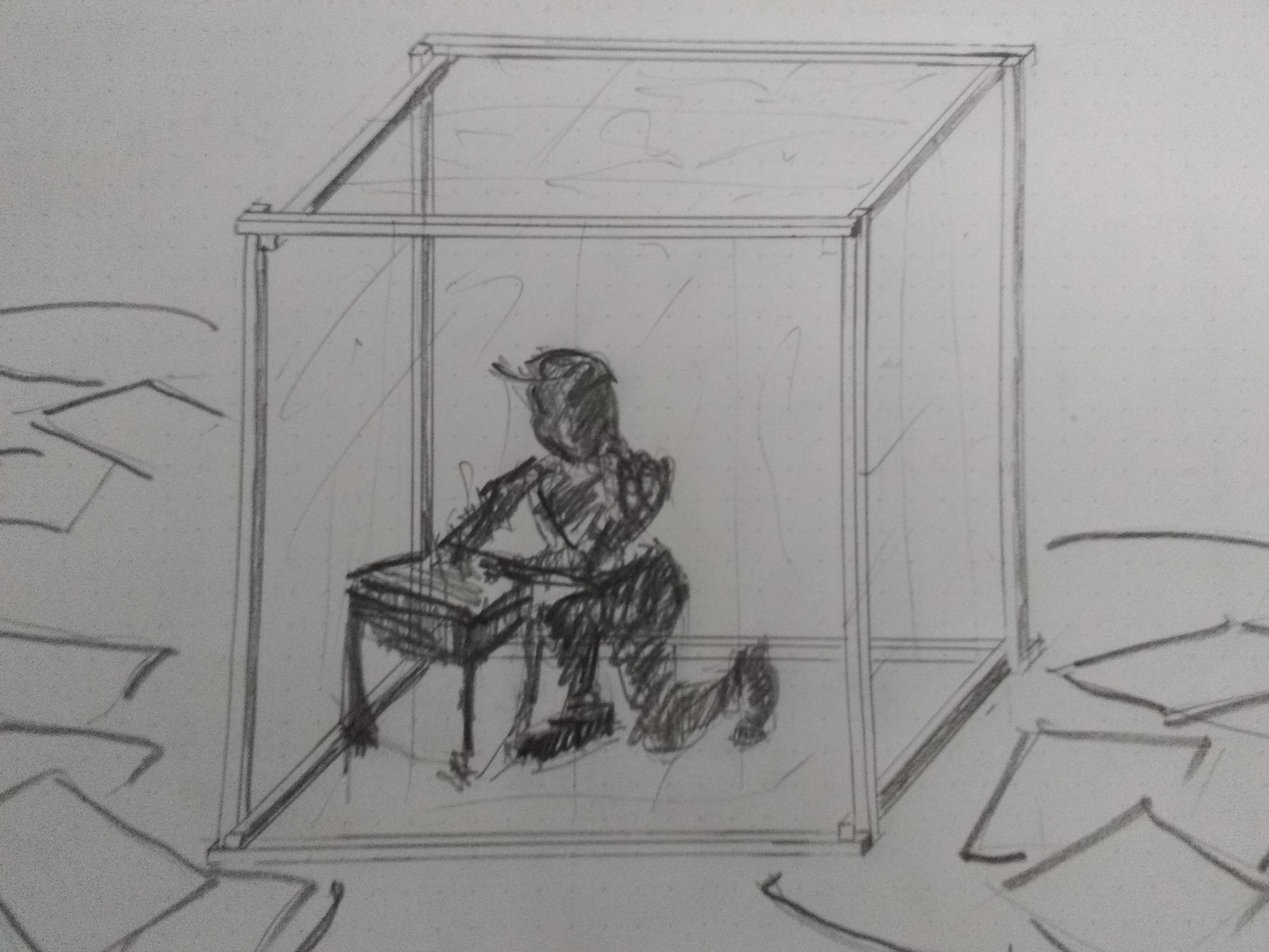 Confiné dans un cube, le plasticien Wen réalise
