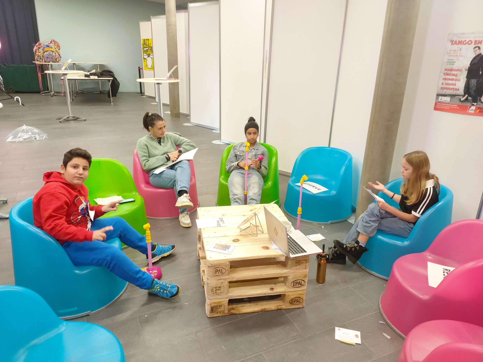 Au fil des jours, ce cocon, joyeusement bricolé, deviendra un lieu pour se reposer, ralentir, sentir, toucher, contempler et écouter ensemble. Tous les jours, il y aura des temps pour construire et faire ensemble et des temps pour (se) raconter.