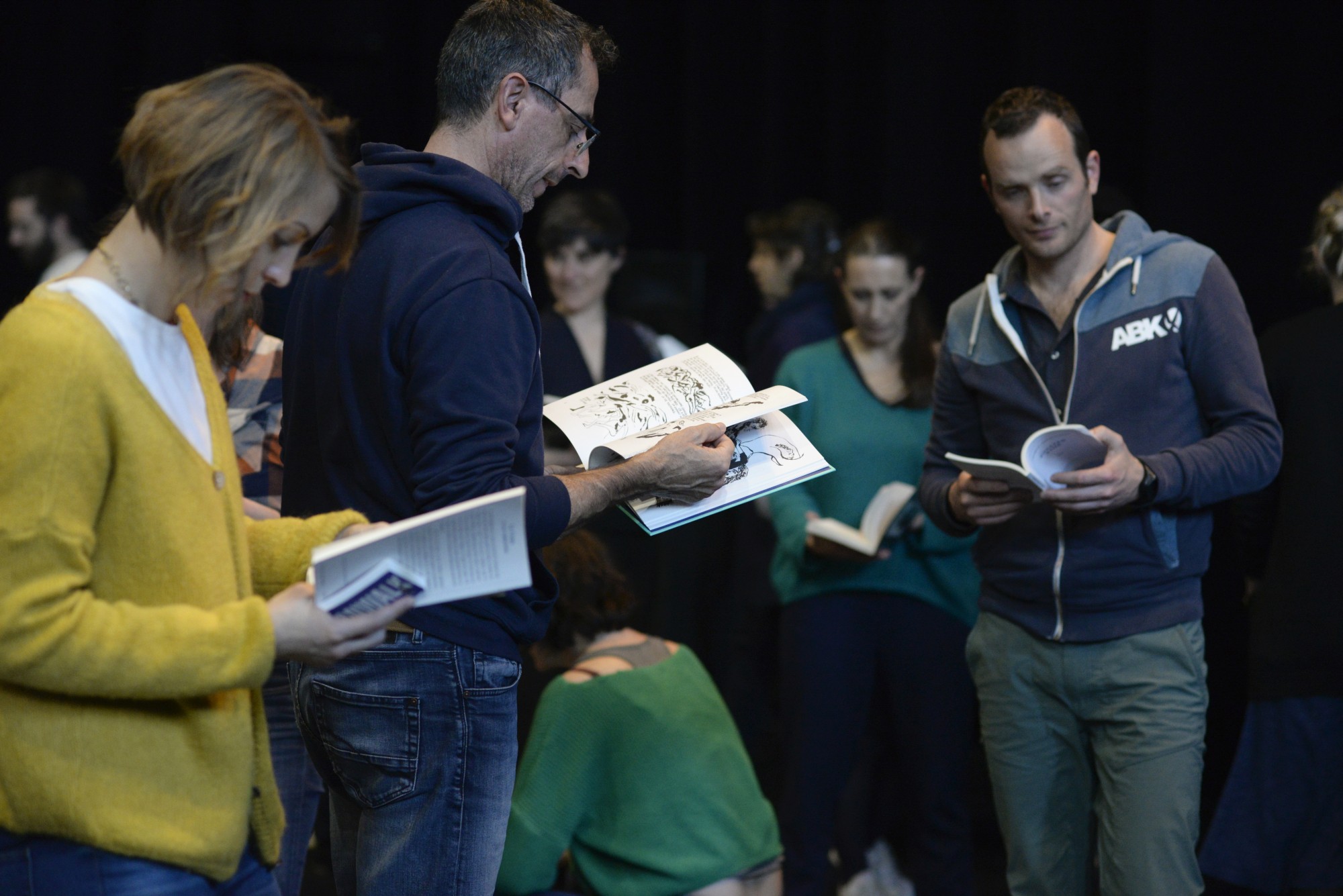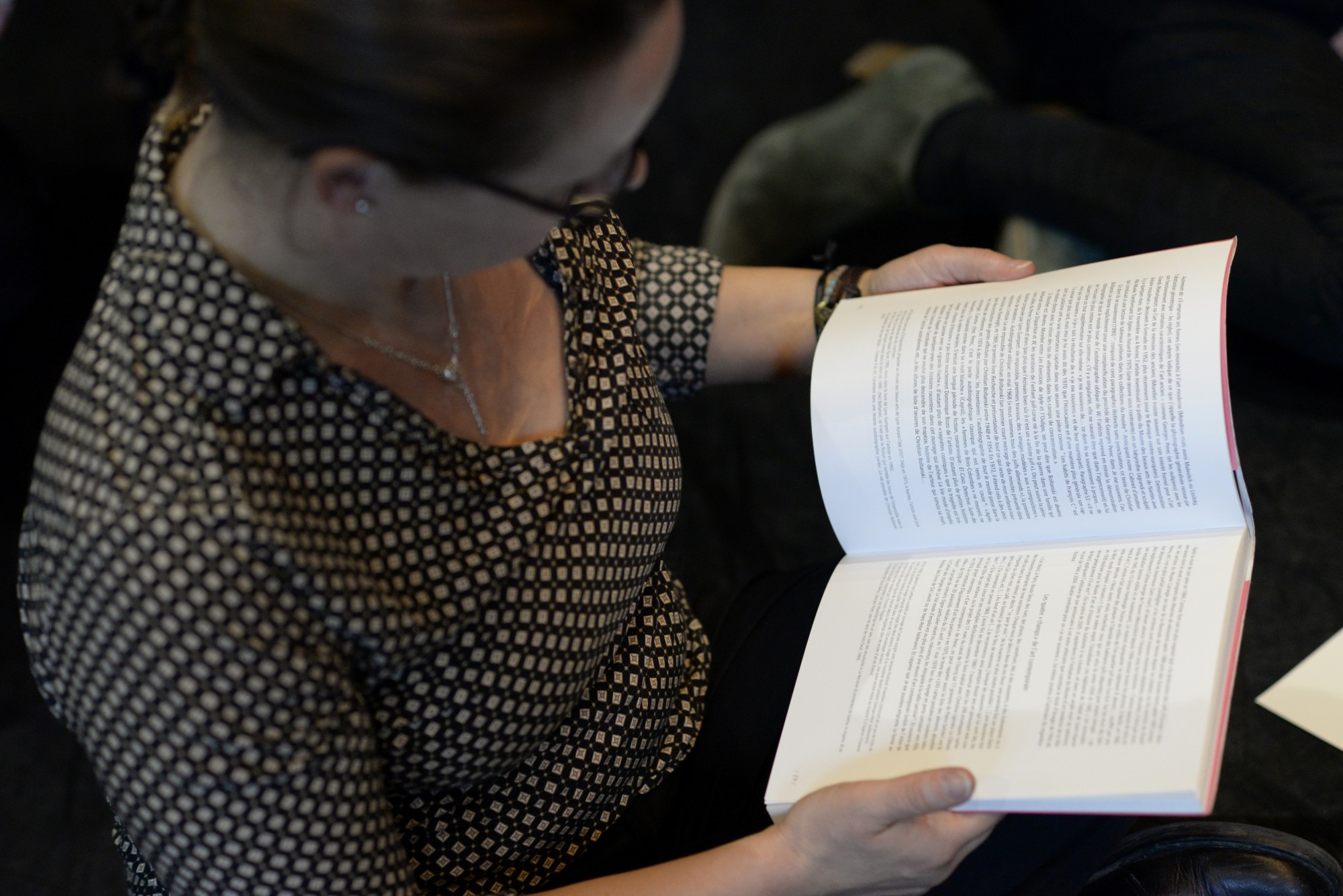 ps : une participante m’a transmis des photos de l’échauffement. P’tit souvenir angevins :) Prochaine fois, promis, on propose aux participants de réemployer les livres pendant l’impro du Bord de scène. Chacun son livre, et hop ! ils piochent dedans pour alimenter leurs questions.