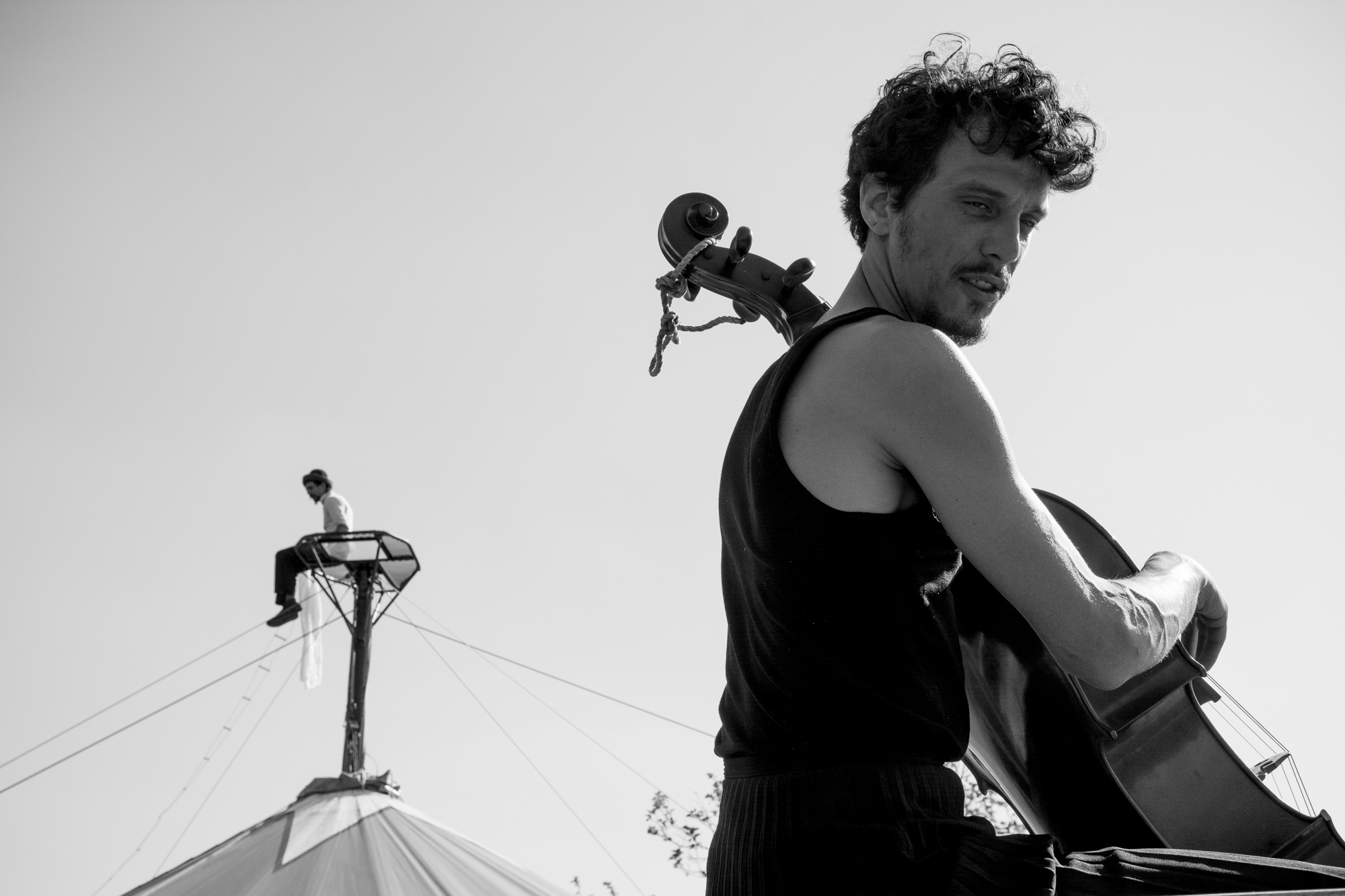 SOUS LE CHAPITEAU : Violoncelliste, comédienne : Amandine Dolé — Jongleur , acrobate : Baptiste Abraham Costumière : Camille Lacombe — Régie son et agrès de cirque : David Guillermin — Régie générale et lumière : Dimitri Rompion — Fil de fériste, funambuliste : Lucia Rosella — Solen Henry : Équilibriste, porteur.