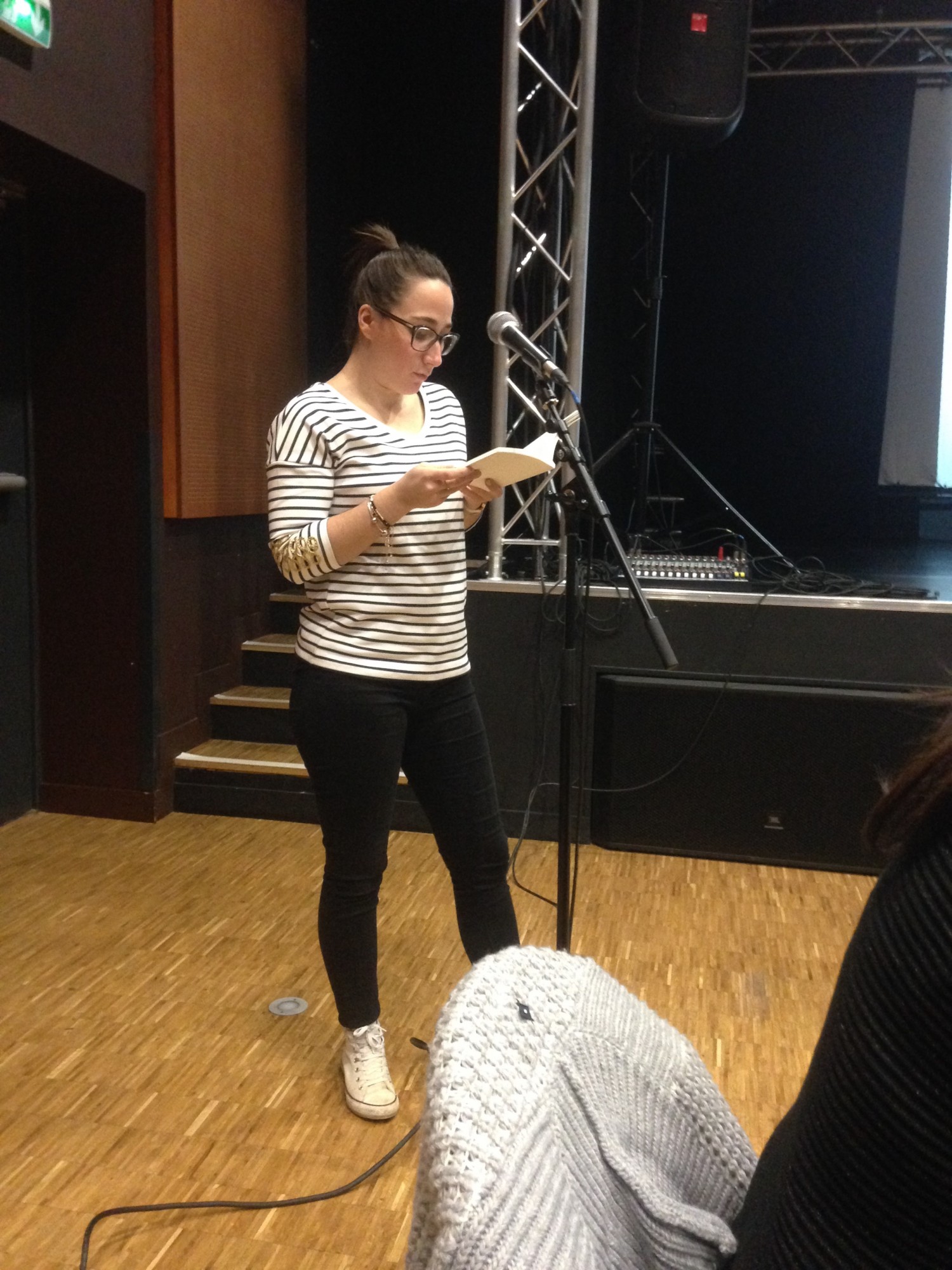 Pourquoi je suis là. Pourquoi y a personne. Pourquoi j’ai pas loupé mon bus. Pourquoi deux hommes sur scène. Pour…