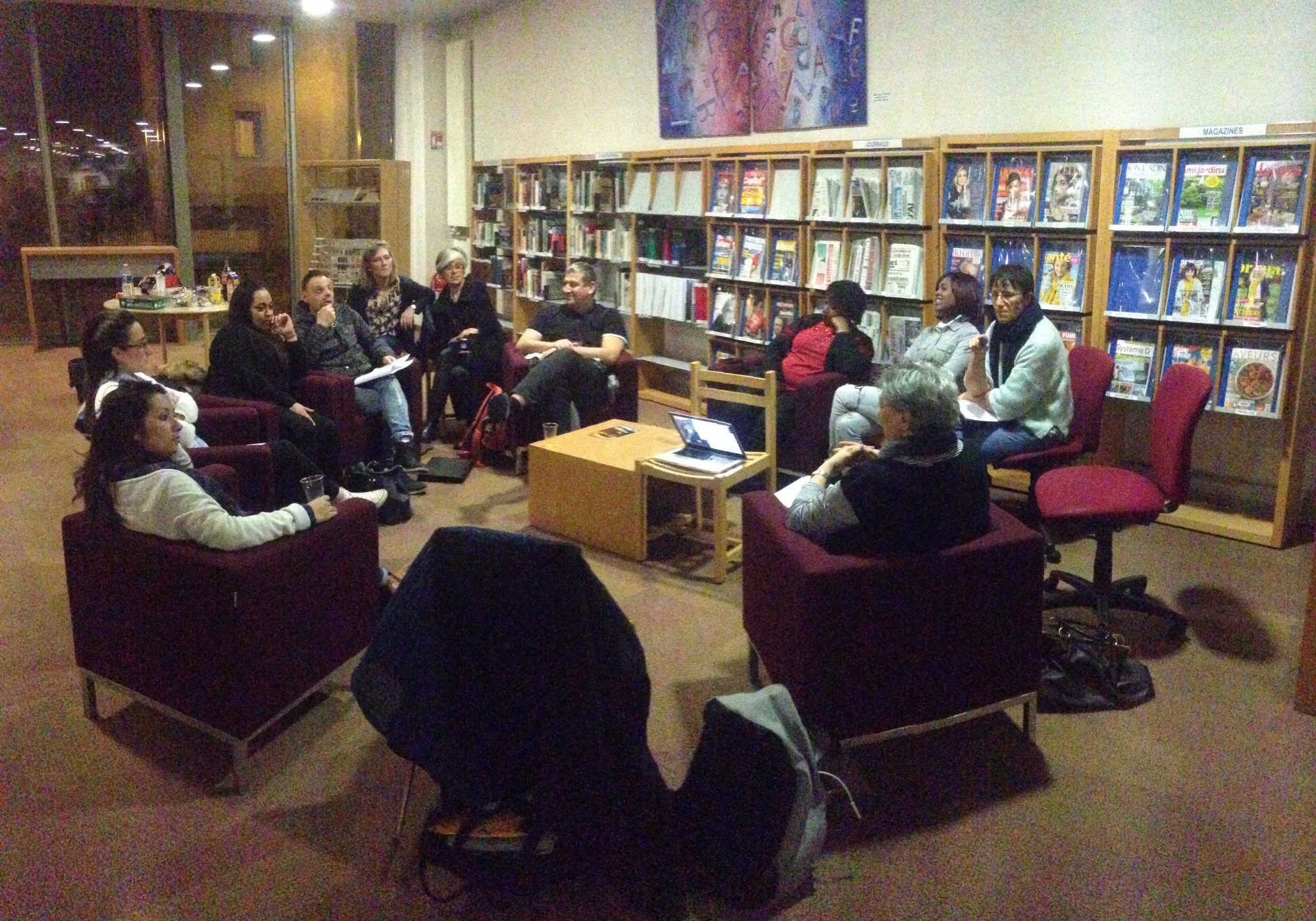 Échange autour de l’écriture en cours, en présence de : Julie Chêne (médiatrice auprès des publics de Gonesse), Antoinette Hubert (directrice du musée archéologique en Pays de France ARCHEA), Agathe Pfauwadel (chorégraphe en résidence CLEA sur l’Est Val d’Oise).