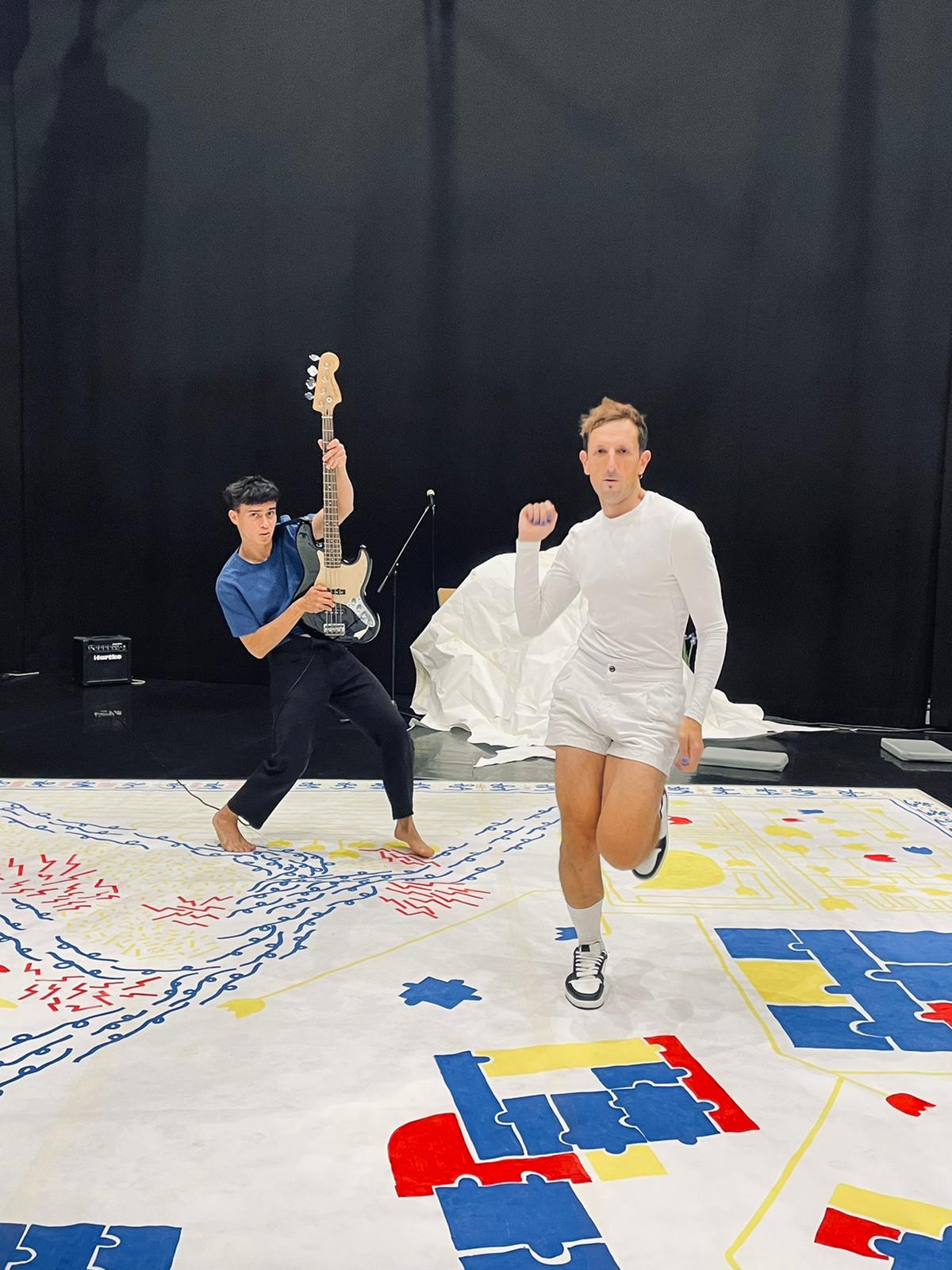 C’est une pièce très courte (30 minutes) mais d’une densité remarquable que Laurent Cebe nous a proposée mercredi dernier à la mairie de Nantes-Chantenay, salle des mariages. Le public était encore nombreux, après avoir vu MOCHE, à rester au bord de scène en présence du dessinateur-chorégraphe, du danseur Cédric Cherdel et du musicien Jonathan Poulet.