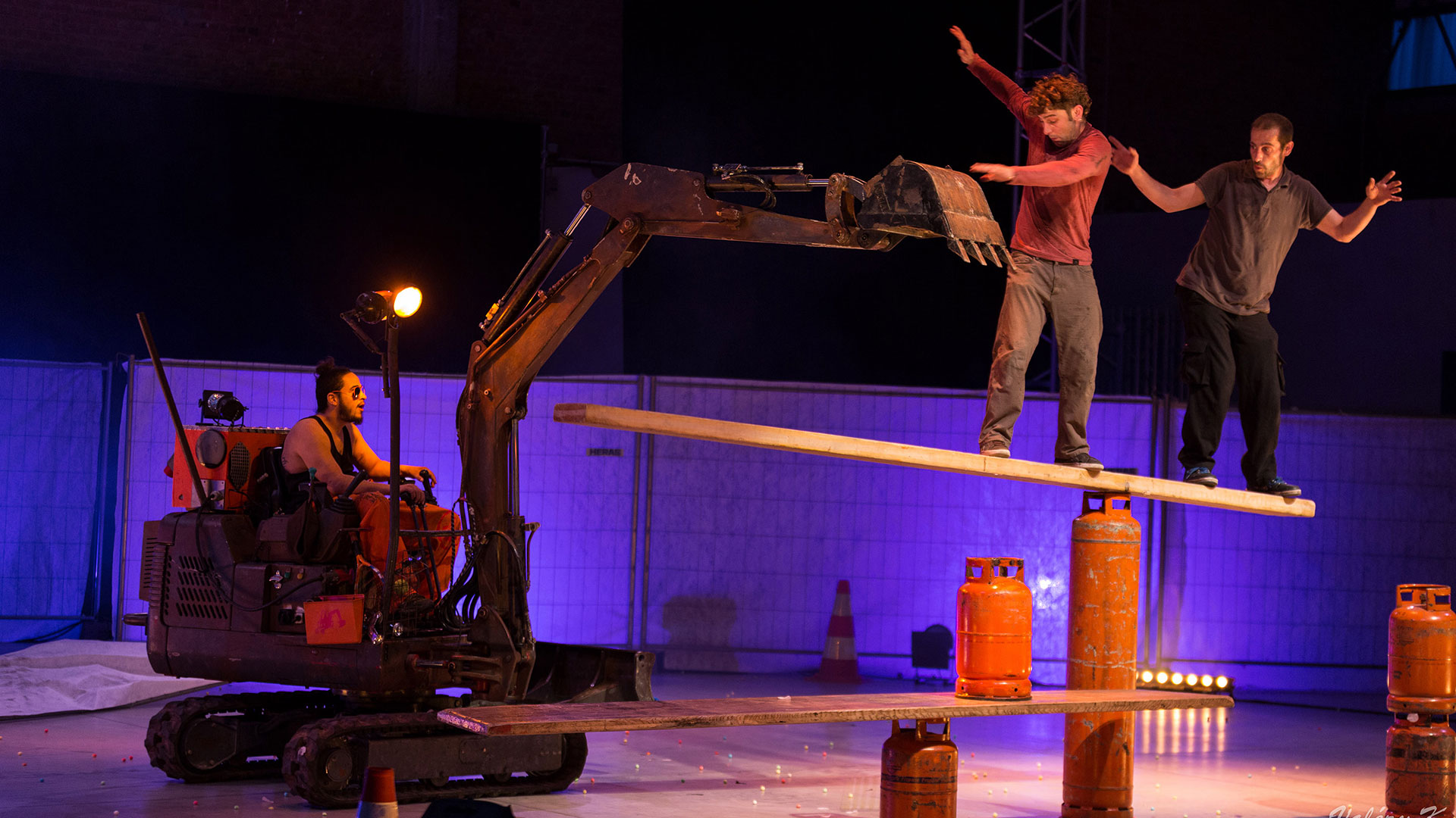Mais jusqu’où iront ces artistes ? Le Cirque Inextremiste complète son nom par « Cirque et réel à risques » ! Le trio infernal d’acrobates d’Inextremiste débarque avec Extension. Comme dans leur précédent spectacle, ils réutilisent planches et bouteilles de gaz. Mais après s’être fait voler son fauteuil roulant par ses compères, Rémi revient au volant d’un engin redoutable, une minipelle ! La vengeance est prise et les frissons garantis. L’engin de chantier porte les acrobates en équilibre, jusqu’à les envoyer dans les airs (…).