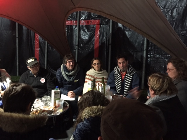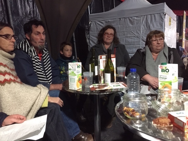Et puis il y a l’histoire que les uns et les autres se racontent, les uns se racontent une histoire et les autres une autre histoire, et alors voilà, tout le monde se raconte des histoires, mais il y en a qui ne comprennent pas l’histoire qui se déroule sur scène, et il y en a qui comprennent très bien, pour certains spectateurs ou spectatrices c’est très clair, pour d’autres ce n’est pas clair, certains comprennent et certaines ne comprennent pas et tout le problème du spectacle se focalise sur le comprendre et c’est vraiment un vrai problème, ce basculement du plaisir au déplaisir de regarder un spectacle parce qu’il faut comprendre, mais pour Extension il n’y a pas de dialogue, il n’y a rien à comprendre à proprement parlé, tout est axé sur le visuel et l’ouïe, le défonçage de la palissade, la rampe de lumière qui s’écroule (presque) sur le public, la puissance de la musique, la danse de la pelleteuse, les jeux d’acrobaties sur des poutres et des bonbonnes de gaz, tout est axé sur le ressenti, sur notre propre histoire dans notre tête alors certains spectateurs et spectatrices sont bien embêté·es, et puis zut, s’ils disent qu’il n’y a pas d’histoire dans Extension, c’est qu’ils n’ont pas besoin d’une histoire, ils en ont assez dans leur tête des histoires, ils n’ont pas envie qu’on leur raconte une autre histoire, basta ! Ils voient simplement du cirque et c’est tout ! Ils ne vont pas en faire un, de cirque, ils ne sont pas là pour ça, et pourtant l’histoire en cirque c’est la base a dit une spectatrice, c’est la base, même si l’histoire elle est bateau, c’est la base, a-t-elle insisté, faut une histoire, il y a toujours une histoire, il y a toujours un fil conducteur, c’est pour ça que Extension marche d’ailleurs, car le fil conducteur conduit à une histoire, l’histoire de gens qui se connaissent et qui s’aiment d’amour vache a résumé une spectatrice, mais on ne serait pas là ce serait pareil, ce n’est pas nous qui induisons l’histoire d’Extension, elle est déjà construite avant que nous la regardions, Extension c’est juste une scène de la vie quotidienne, un jeu vital d’équilibre et de déséquilibre entre l’homme et la machine, du banal magnifié par la fiction de la boîte noire du théâtre.